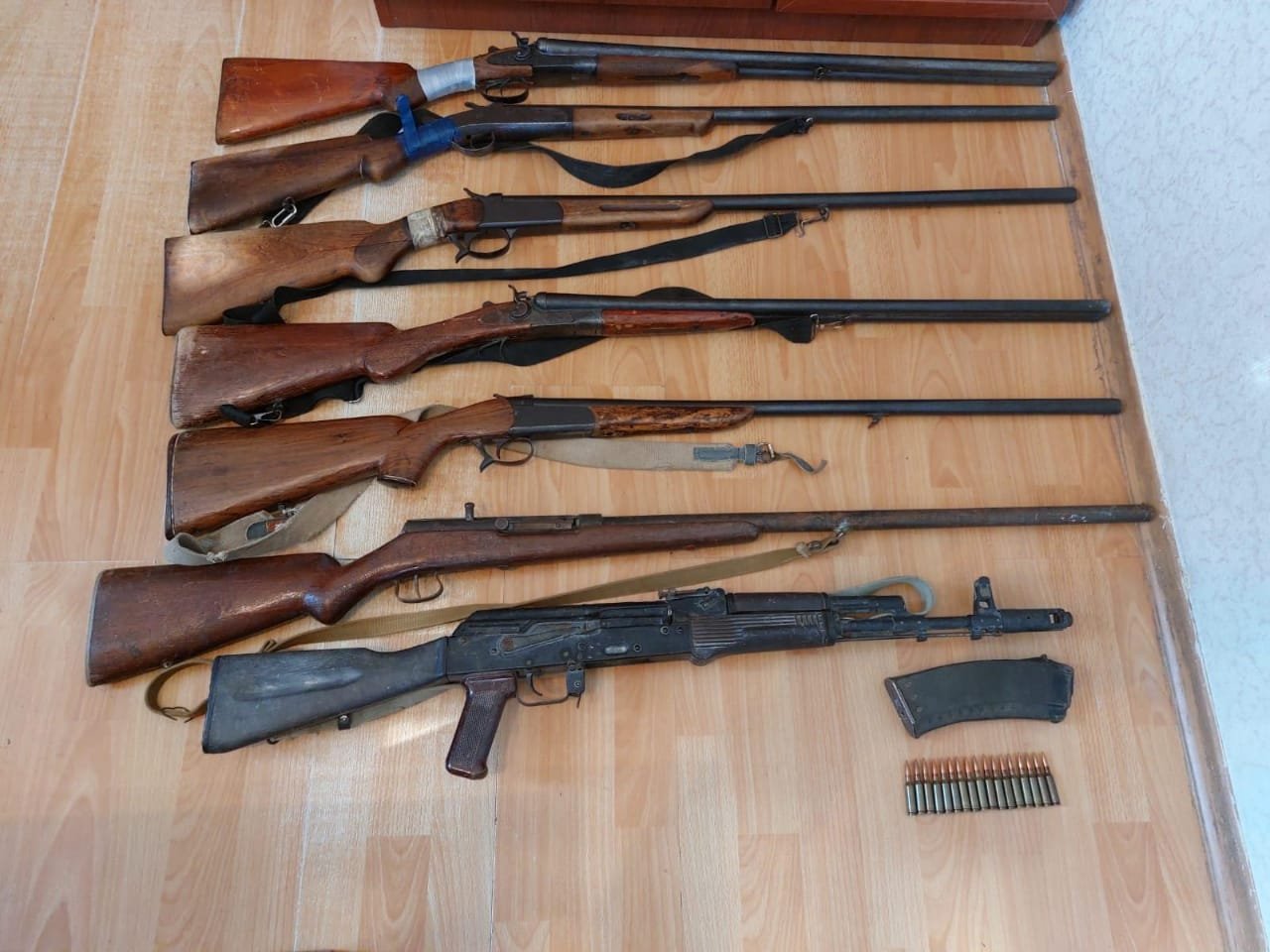 DİN-in Mətbuat Xidmətinin Şirvan regional qrupundan Bakunews.az-a verilən məlumata görə, şöbə əməkdaşları tərəfindən hadisə yerinə baxış keçirilib. Aparılan təxirəsalınmaz tədbirlər nəticəsində qeyd olunan ərazidən 1 ədəd avtomat, 1 ədəd daraq və 17 ədəd patron aşkarlanaraq götürülüb.
