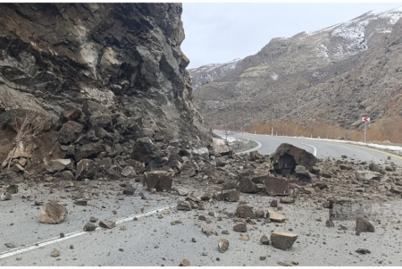 Şahbuzun Biçənək kənd yoluna qaya uçub