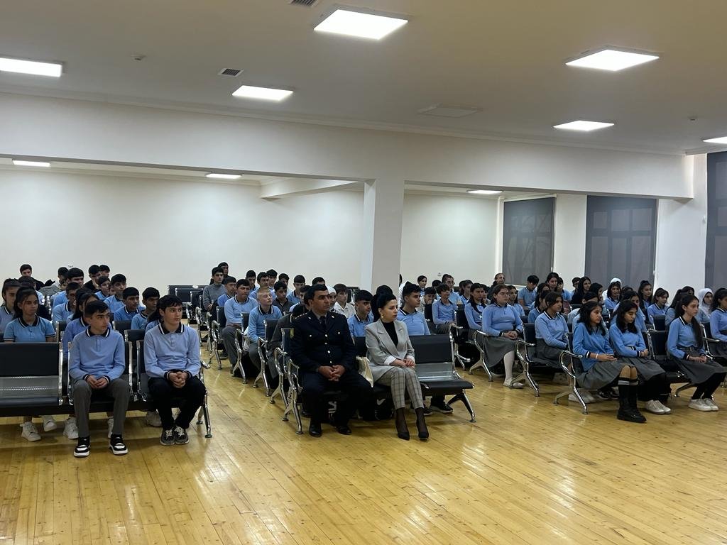 O, qeyd edib ki, bu zərərli maddələrin geniş yayılmasının qarşısının alınması istiqamətində hüquq mühafizə orqanları tərəfindən bütün zəruri tədbirlər görülür və bu cinayət əməli ilə məşğul olan şəxslər saxlanılaraq məsuliyyətə cəlb olunurlar. Erkən nikahların fəsadları mövzusunda da çıxış edən şöbə rəisi, məktəblilərə dəyərli tövsiyələr verib və təhsillərində uğurlar arzulayıb. Tədbir zamanı daxili işlər orqanlarında xidmət etmək həvəsində olan məktəblilərə Polis Akademiyasına kursant qəbulu qaydaları ilə bağlı ətraflı məlumatlar da verilib, Polis Akademiyasının tarixi və daxili işlər orqanlarında xidmətin şərəfliliyi barədə də çıxışlar edilib. Tədbirin sonunda məktəbliləri maraqlandıran suallar cavablandırılıb və narkotiklərin insan sağlamlığına vurduğu zərərləri əks etdirən videoçarx nümayiş etdirilib.