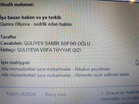 Cavabdeh şəxs Vəfa Quliyevanın həyat yoldaşı Quliyev Samir Səfər oğludur