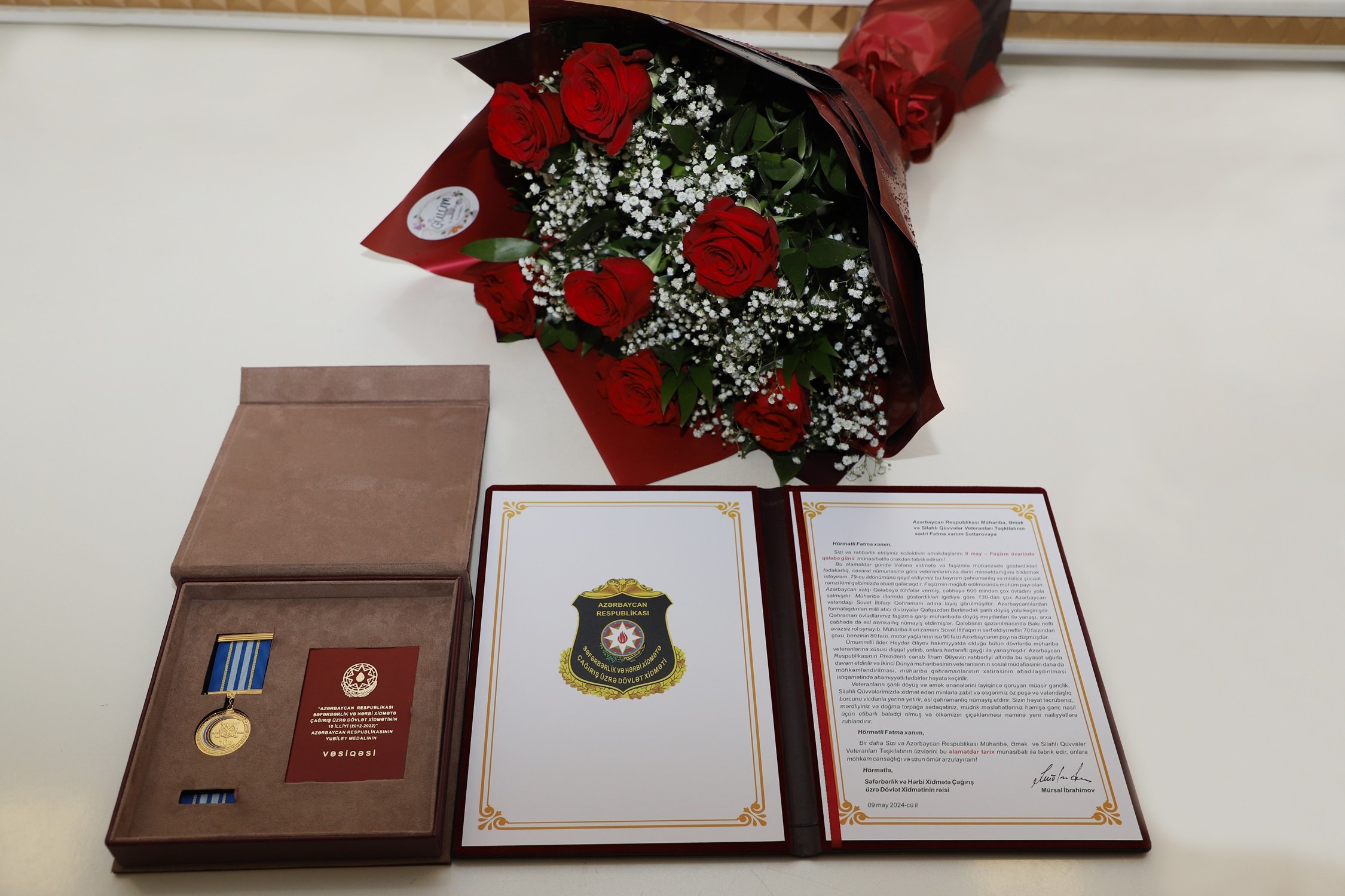 Görüşün sonunda vətəndaşların hərbi vətənpərvərlik tərbiyəsində və vətənpərvərlik təbliğatında göstərdiyi xidmətlərə görə Fatma Hüseyn qızı Səttarova “Azərbaycan Respublikası Səfərbərlik və Hərbi Xidmətə Çağırış üzrə Dövlət Xidmətinin 10 illiyi (2012-2022)” yubiley medalı ilə təltif edilib.