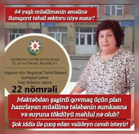 O qadın övladının anasından çox mənə bağlı olmasını qəbul edə bilmir. Mənim həyat yoldaşım həmin valideynlə bağlı prokurorluğa şikayət edəcək. Çünki artıq biz bezmişik. Hər dəfə polisə şikayət edir. Gedib problemlərini həll etsin. Məktəbimizin direktoru Əhməd müəllimin oğlu deputatdır. Sizcə, belə bir məktəbdə belə hadisə realdırmı?”