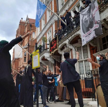 London polisinin sözçüsü bildirib ki, onlar yerli vaxtla saat 16:30 radələrində bir qrup etirazçının səfirlik binasına daxil olması barədə məlumat aldıqdan sonra hadisə yerinə gediblər. 8 nəfər səfirlik binasına qanunsuz daxil olmaqda və binaya zərər vurmaqda şübhəli bilinərək saxlanılıb.