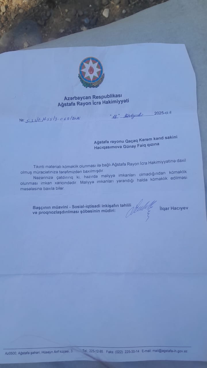 Məsələnin daha acınacaqlı tərəfi isə video görüntülərdə üzə çıxıb. Belə ki, ailənin yaşadığı evin vəziyyəti də sosial yardıma ehtiyacın nə qədər dərin olduğunu göstərir. Qəzalı vəziyyətdə olan, istismar üçün yararsız görünən bu mənzildə bir ana və uşaqları ağır şəraitdə yaşamağa məcbur olub.