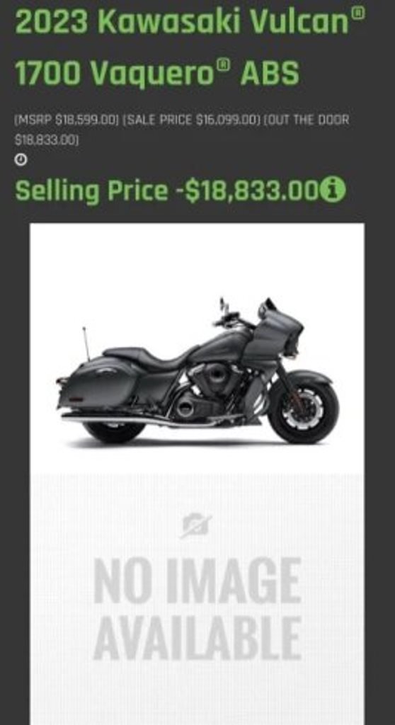 Sözügedən motosiklet modeli "Kawasaki Vulcan 1700 Vaquero ABS"dir. Həmin modelin qiyməti isə 14 min dollardan başlayır və dəyişir.