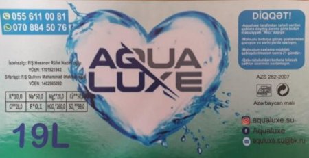 P.S.Biz də redaksiya olaraq «AQUA LUXE» su şirkətinə məxsus olan su qablarının üzərində qeyd olunan nömrəyə zəng edib istehsalçı Məhəmməd bəyə zəng edib fəaliyyətləri ilə maraqlandıq. O, bildirdi ki, biz artıq fəaliyyət göstərmirik, su satışı ilə də məşğul deyilik. Sabahı gün eyni nömrəyə müştəri qismində zəng edib su lazım olduğunu dedik. Məmnuyyətlə deyib suyu hansı ünvana çatdırılmasını soruşdular. Görünür, Məhəmməd bəyin dediyi yalandır. Dəyişən ancaq etiket olub