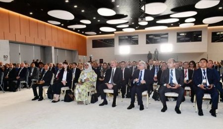 AZƏRTAC xəbər verir ki, Azərbaycan Respublikasının Prezidenti İlham Əliyev tədbirdə çıxış edir.
