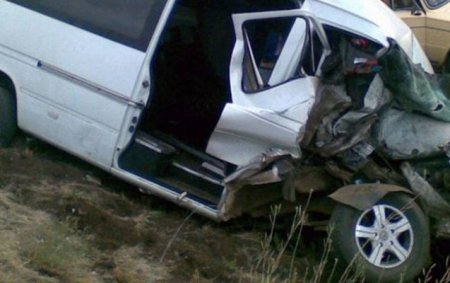 Mikroavtobusun fəhlələri daşıdığı qeyd olunur.