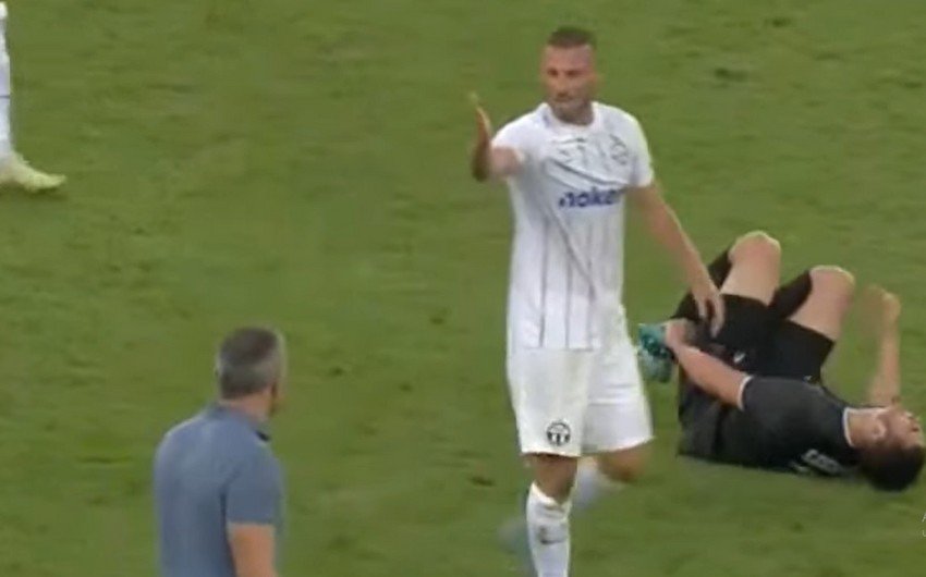 Təcrübəli mütəxəssisin bu etirazı meydan sahiblərinin qaydanı pozan oyunçusu Fidan Alitiyə xoş gəlməyib. O, Qurbanovun etirazına sərt reaksiya verib. 50 yaşlı çalışdırıcı futbolçunu sakitləşdirərək, ona barmağı ilə "əla" işarəsi göstərib.