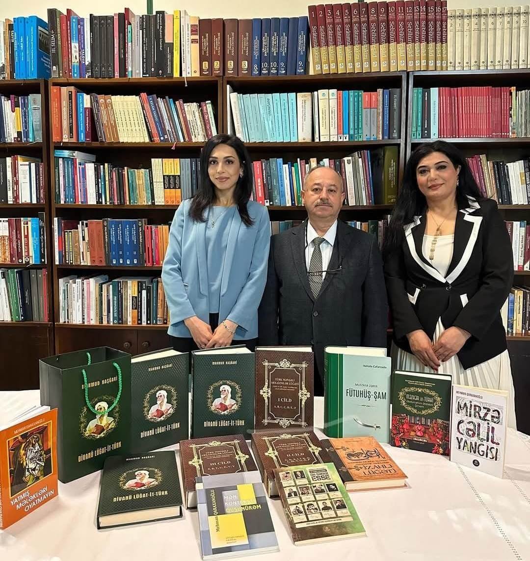 Mustafa Birol Ülkerin müşayəti ilə orada yaradılmış xidmət sahələri, fondlar, oxu zalları və digər şəhərciklərlə də tanış olduq. Mərkəzin sorğusuna əsasən gətirdiyimiz kitabların səgisini və təqdimatını təşkil etdik. AMEA Nəsimi adına Dilçilik İnstitutunun yenidən nəşrə hazırladığı “Divanü Lüğat-it-Türk” (1-3 cildlər), “Türk mənşəli araxaizmlər lüğəti” və Vahidə Cəfərzadə və Mustafa Zəriin “Fütuhüş-Şam”, Əbdürrəhim Ərdəbili Şirvaninin “Məzhər üt-Türki”, Xədicə Heydərovanın “Nəsiminin dilində işlənən onomastik vahidlərin iazahlı lüğəti”, Lənkəran Regional Elmi Mərkəzinin direktoru filologiya üzrə fəlsəfə doktoru Əliyev Mehmannın "Yatmış mələkləri oyatmayın", "On yazıçı haqqında on səkkiz esse", "Mirzə Cəlil yanğısı", "Mən konteksti düşünürəm" adlı kitablarını Türkiyənin İstanbul şəhərində yerləşən İSAM Kitabxanasına hədiyyə etdik.