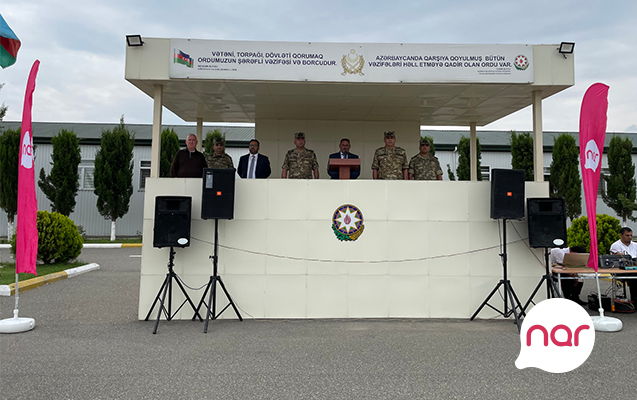 Nar 26 İyun - Silahlı Qüvvələr Günü ərəfəsində Azərbaycan Ordusuna mənəvi dəstək məqsədilə “N” saylı hərbi hissədə xidmət edən hərbi qulluqçularla görüş keçirib. Müdafiə Nazirliyinin təşkilatçılığı ilə baş tutan tədbirdə çıxış edənlər vətənpərvər əsgərlərimizi qarşıdan gələn Silahlı Qüvvələr Günü münasibəti ilə təbrik edib, onlara çətin və şərəfli xidmətlərində uğurlar arzulayıblar.