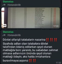 Tələbələrə bu barədə tərəfimizdən məlumat verilib. Məlumat verildikdən sonra baş verən situasiyada günahkar universitet çıxarılır. Məsələ ilə bağlı universitetin aiddiyyəti təşkilatlara müraciəti hələ ki cavabsız qalır.