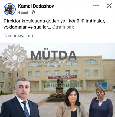 Digər direktor müavini Kəmalə Niftaliyevanın isə bu tələbi qəbul etmədiyi, ərizə yazmaqdan imtina etdiyi və düşünmək üçün vaxt istədiyi deyilir.
